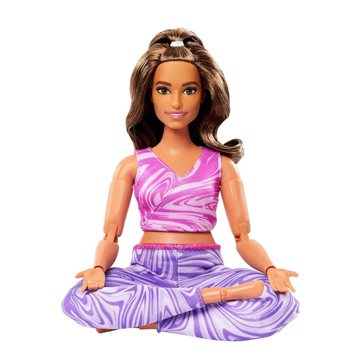 View full detailsBarbie Made To Move Fashion Doll, Brunette With Curvy Body, Removable Top & Pants, 22 Bendable Joints, Purple